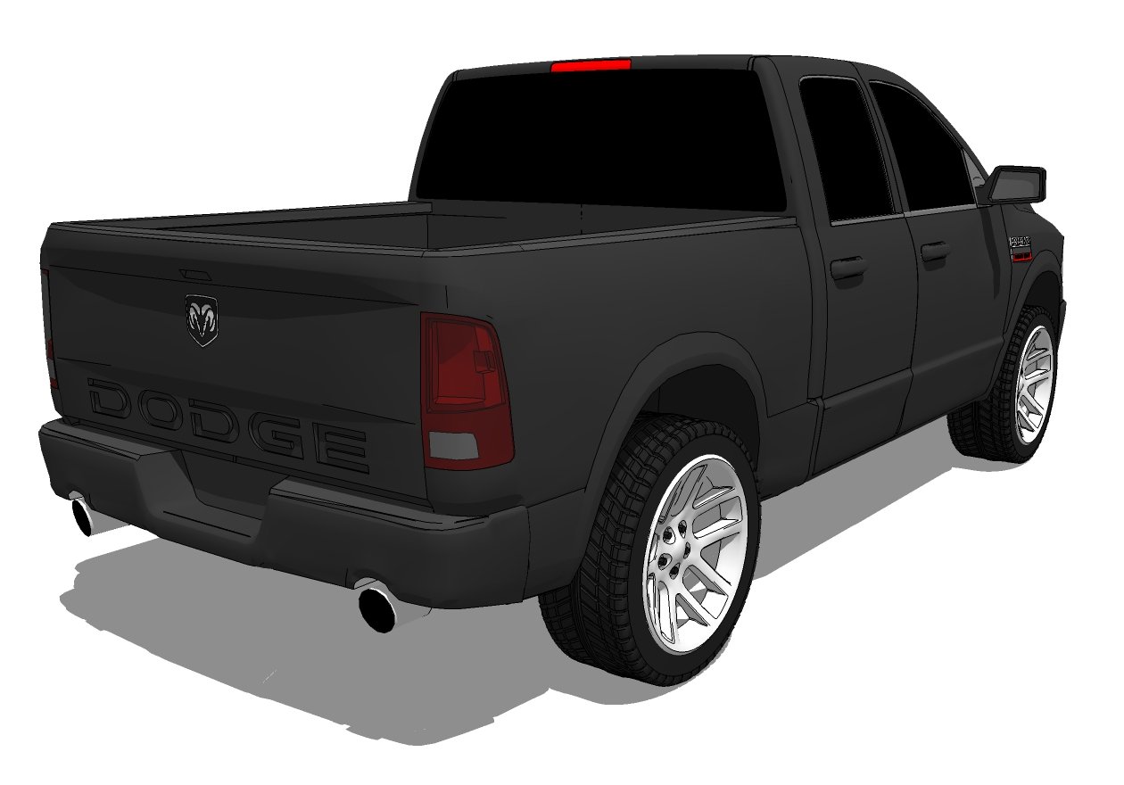 Purchase a 3D Model of 2011 Dodge Ram 1500 Sport that was drawn in scale using computer drawing software and hardware. You will receive a download link in Compressed (.zip) format that includes Google SketchUp (.skp), 3DS Max (.3ds) and AutoCAD (.dwg) files of the 3D Model.