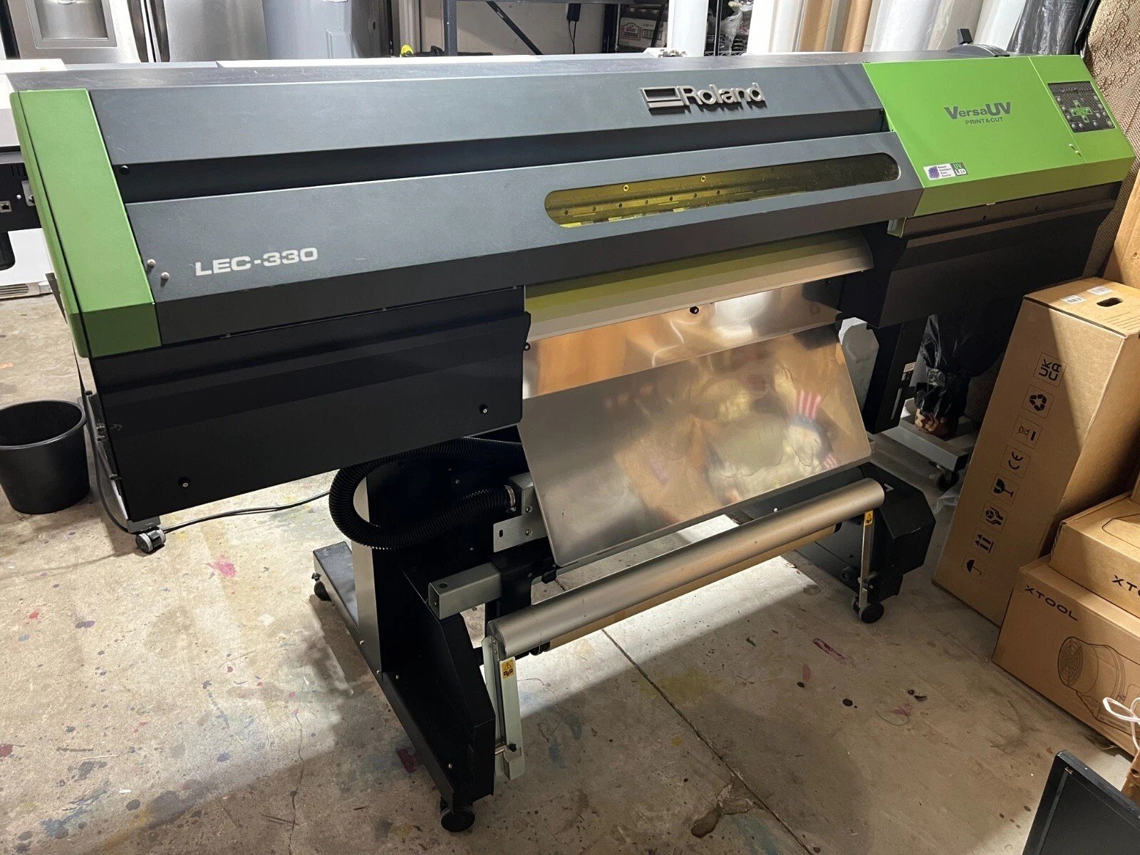 Includes: Roland LEC-330 VersaUV Print & Cut with all parts in Excellent Condition. Recently refurbished inside and out with new Printheads, Dampers, Capping Station and Pump.