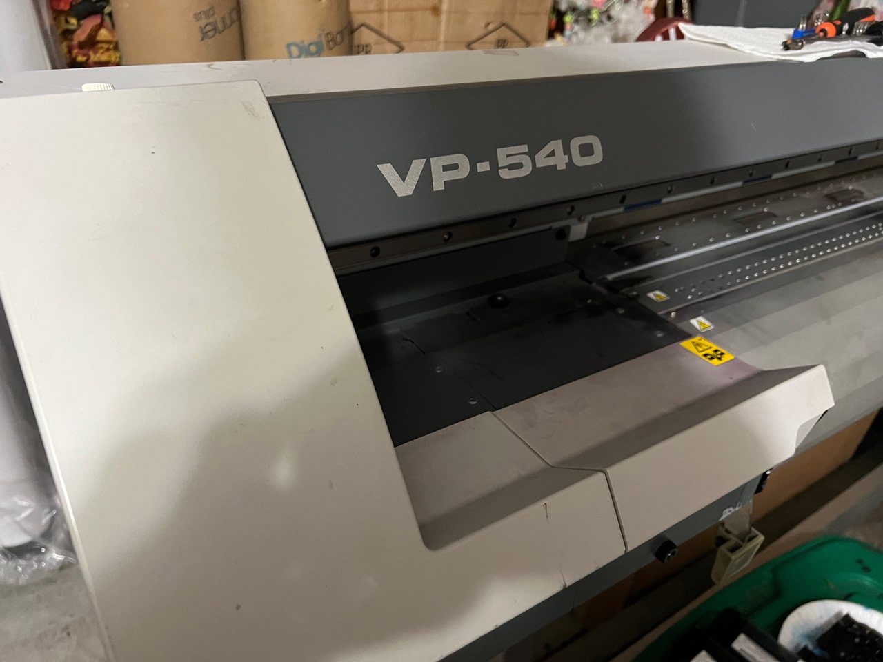 Roland VP-540 VersaCAMM Print & Cut with all parts in Excellent Condition with four DX4 Printheads, Dampers, Capping Station and Pump. Also has a built-in Roland TUC-2 take up system, heater and automatic dryer to speed up production.